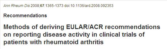 • Recommendations: Methods of deriving EULAR/ACR recommendations on reporting disease activity in clinical trials of patients with rheumatoid arthritis - http://ard.bmj.com/content/67/10/1365.short