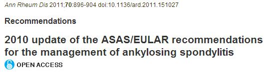 • 2010 update of the ASAS/EULAR recommendations for the management of ankylosing spondylitis - http://ard.bmj.com/content/70/6/896.short