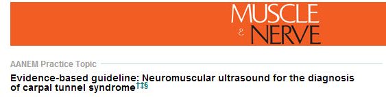 • Evidence‐based guideline: Neuromuscular ultrasound for the diagnosis of carpal tunnel syndrome - http://onlinelibrary.wiley.com/doi/10.1002/mus.23389/abstract;jsessionid=745E984E82C356BE6EA51C0162244812.f03t04?deniedAccessCustomisedMessage=&userIsAuthenticated=true