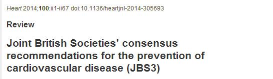 • Joint British Societies' consensus recommendations for the prevention of cardiovascular disease (JBS3) - http://heart.bmj.com/content/100/Suppl_2/ii1.extract