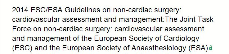 • 2014 ESC/ESA Guidelines on non-cardiac surgery: cardiovascular assessment and management. The Joint Task Force on non-cardiac surgery: cardiovascular assessment and management of the European Society of Cardiology (ESC) and the European Society of Anaesthesiology (ESA) - http://eurheartj.oxfordjournals.org/content/35/35/2383.short