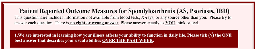 Ankylosing Spondylitis / Psoriatic Arthritis (PROMs)